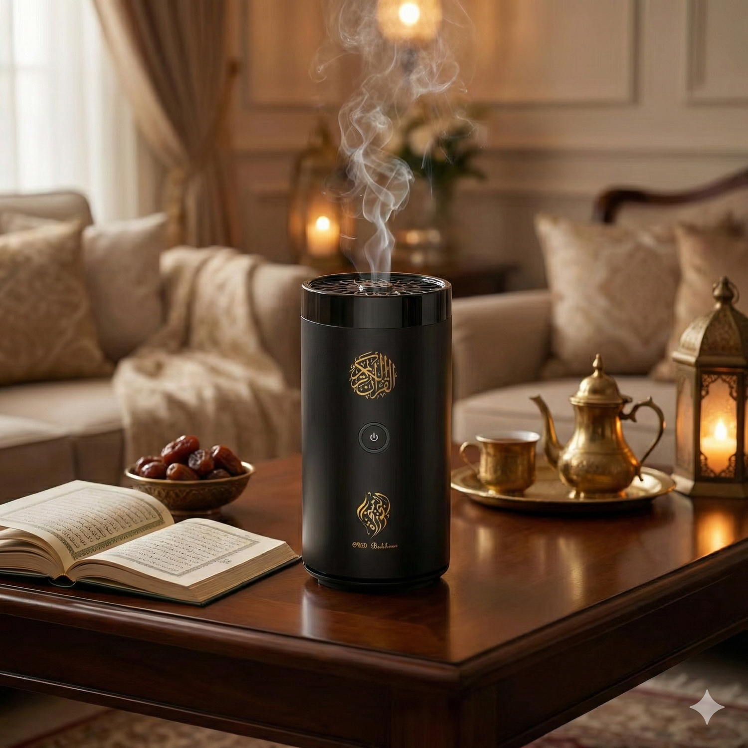 Oudly fusionne l'art millénaire du Bakhour et la noblesse des récitations coraniques dans une pièce de design unique.